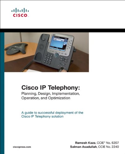 This is the eBook version of the printed book. Free download Cisco IP Telephony books collection in PDF, EPUB, FB2, MOBI, and TXT formats. If the print book includes a CD-ROM, this content is not included within the eBook version.A guide to successful deployment of the Cisco IP Telephony solution Real-world case studies from the Cisco design consulting engineers who developed the PDIOO process provide practical advice on all stages of successful IPT deployment Concise understanding of the PDIOO phases enables architects and engineers to successfully deploy the Cisco IPT solution Division of the process into PDIOO phases provides a logical and defined guide for network engineers and architects as they proceed through each of the phases in deploying the Cisco IPT solution Includes detailed questionnaires for each phase of deployment in the PDIOO cycle—a great aid in understanding customer networks and requirements Network infrastructure design, call processing infrastructure design and applications, and voice-mail system design are covered in depth Cisco® IP Telephony (IPT) solutions are being deployed at an accelerated rate, and network architects and engineers need to understand the various phases involved in successful deployment: planning, design, implementation, operation, and optimization (PDIOO). On the road to that understanding, those involved need to collect information for each phase of deployment, and then follow through with the best architecture, deployment model, and implementation based on the data collected. Cisco IP Telephony: Planning, Design, Implementation, Operation, and Optimization is a guide for network architects and engineers as they deploy the Cisco IPT solution. Best deals ebooks download Cisco IP Telephony on amazon.With this book, you will master the PDIOO phases of the IPT solution, beginning with the requirements necessary for effective planning of a large-scale IPT network. From there, you’ll follow a step-by-step approach to choose the right architecture and deployment model. Real-world examples and explanations with technical details, design tips, network illustrations, and sample configurations illustrate each step in the process of planning, designing, implementing, operating, and optimizing a chosen architecture based on information you have collected. In-depth instruction on each PDIOO phase provides specific details about the tasks involved and best practices for successful implementation of the IPT solution. This book also contains predesigned questionnaires and PDIOO assistance tools that help you determine the requirements of each phase of the PDIOO cycle. Authors Ramesh Kaza and Salman Asadullah have been involved with Cisco IPT solutions from the beginning and have planned, designed, and implemented major IPT networks using the guidelines found here. Cisco IP Telephony: Planning, Design, Implementation, Operation, and Optimization provides the step-by-step explanations, details, and best practices acquired by the authors while working with the top Cisco IPT customers. This book is part of the Networking Technology Series from Cisco Press®, which offers networking professionals valuable information for constructing efficient networks, understanding new technologies, and building successful careers. Cisco IP Telephony: Planning, Design, Implementation, Operation, and Optimization (paperback) (Networking Technology) with free ebook downloads available via rapidshare, mediafire, 4shared, and hotfile.